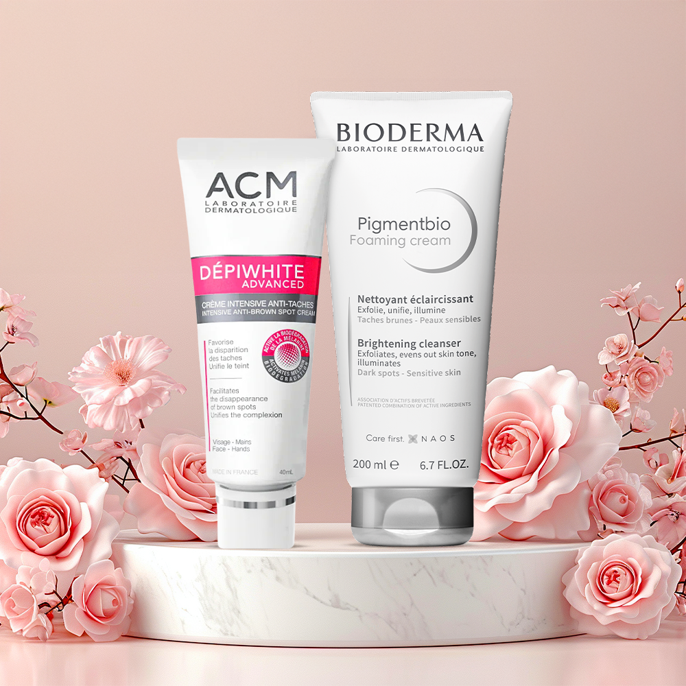 غسول معالج للتصبغات بايوديرما + كريم علاج البقع الداكنة اي سي ام